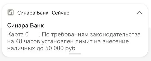 Добавила карту ВТБ, пришло сообщение об ограничении снятия.Добавлял карту Синары в Мир Пей. Увидел сообщение, которое раньше никогда не видел. Причем тут странность, причем тут внесение наличных, тогда как более логичным было бы введение ограничения на сумму расходов (оплаты покупок). А если мне понадобится наличные внести, то я их по СБП кину.